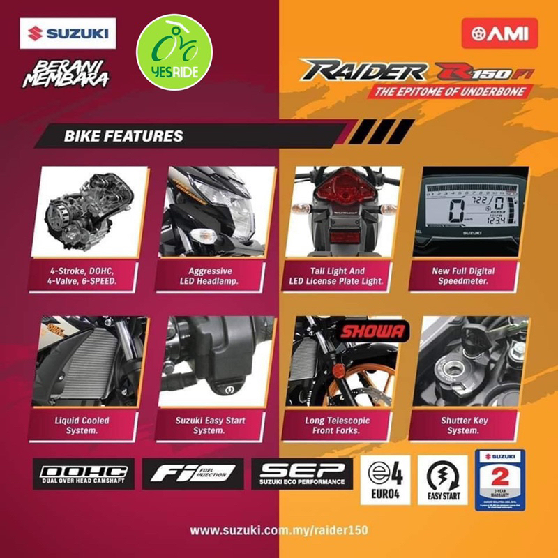 2)WHY buy from SHOPEE? We offer Credit Card MBB/PB ZERO % interest instalment plan for 12 mths!! Buy Cash with FPX thru SHOPEE or Yesride Sdb Bhd (Public Bank A/C 3206-4557-23) Buy hire purcahse thru online loan application@ yesride.com.my/apply-loan-now/ OR send document to us 019-3167683 /012-2826992 ~documents required (IC, Slip Gaji x3, Bank Statement x1)