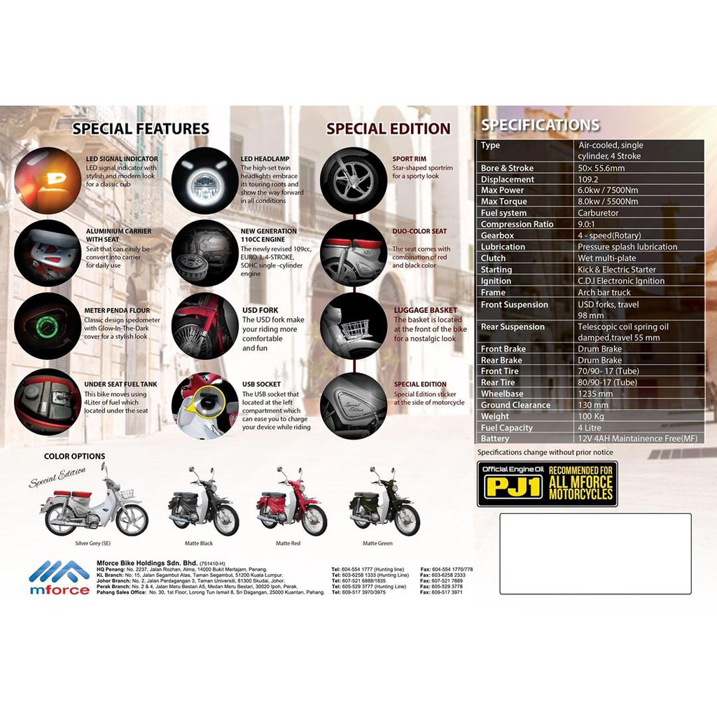 1)Register at JPJ Wilayah Perseketuan ,V Plate. Price is On The Road – Insurance 1st party all rider, road tax 1 year. Customer also can choose any state’s plate number. FREE of charge.